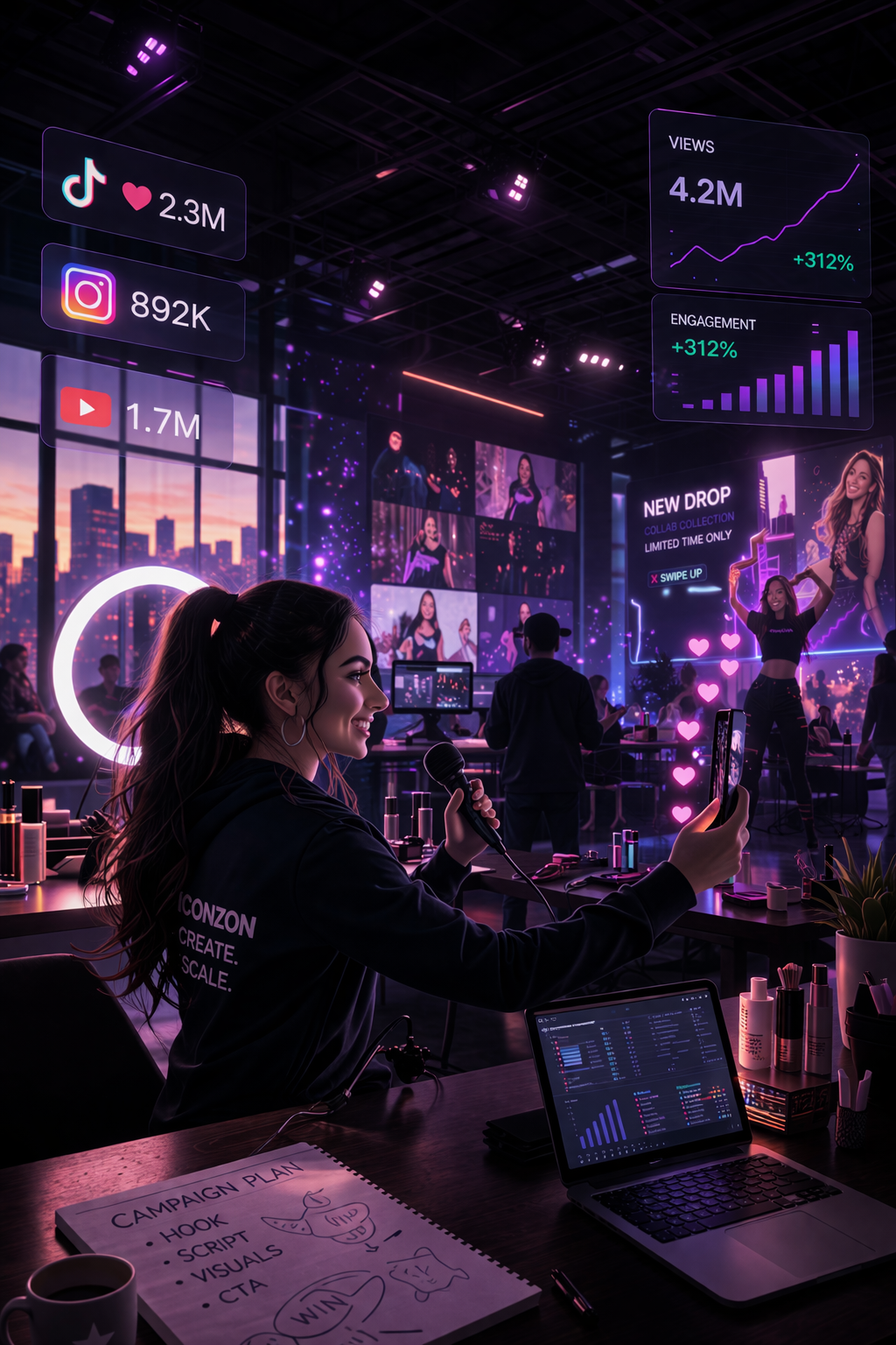 Build the campaign with everything already inside Iconzon — no copy-paste between tools.